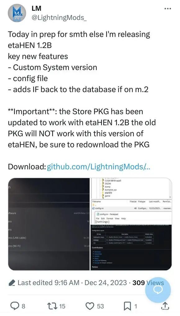 LM把这次的越狱程序命名为etaHEN ,相比之前的功能,改进如下: