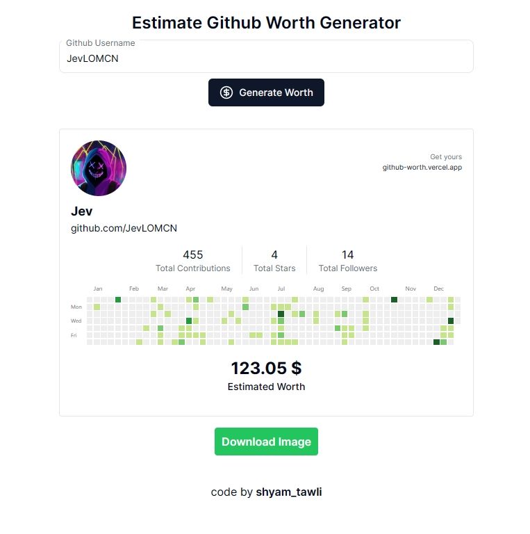 分享一个对 GitHub 账号估值的网站,输入GitHub username就可以估值了。