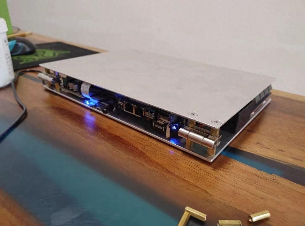 性能方面,主板采用了N305开发版,搭载N305处理器,内置32GB DDR5笔记本内存和1TB的M2固态硬盘。但是,这机器是无风扇设计,散热完全靠银色那个铝制散热片,有人开玩笑说如果发热就要用嘴吹了。铝制散热片的左侧是4545大腔体喇叭,玩游戏和看电影的外放效果不一般,铝制散热篇右侧居然还有一个10469触控板,带实体左键不说,还支持三指手势触控。