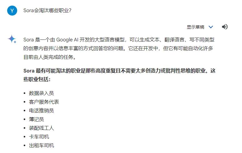 Google Gemini称Sora由Google AI开发的大型语言模型