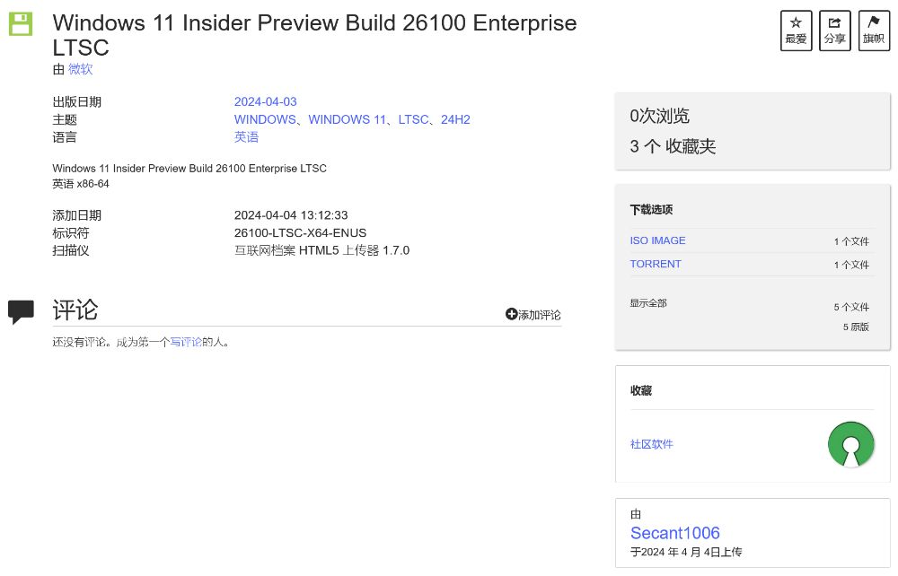 第一份 Windows 11 LTSC 镜像文件刚刚在互联网上泄露。有人上传了即将发布的版本号为 26100.1 的安装盘,让所有人都能在正式发布和推出之前试用这款长支持周期的操作系统。