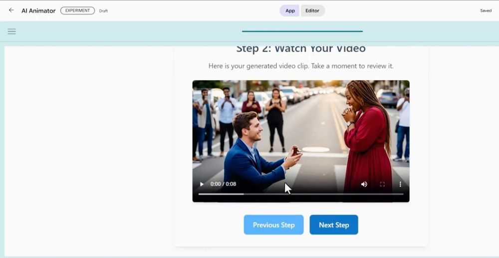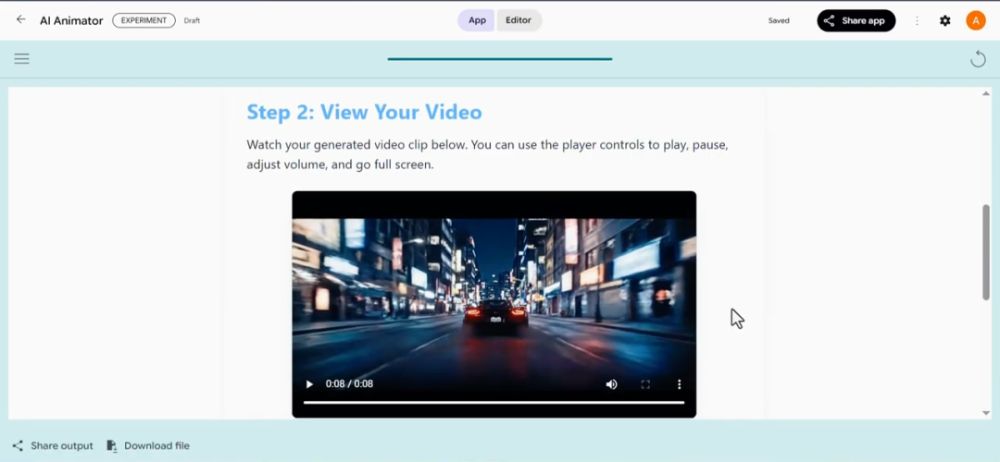 the Veo-3 model generates the video, display it immediately in a video player located below the "Animate Image" button.Underneath the video player, add a button labeled "Download Video" that lets the user save the generated file.Design Guidelines: