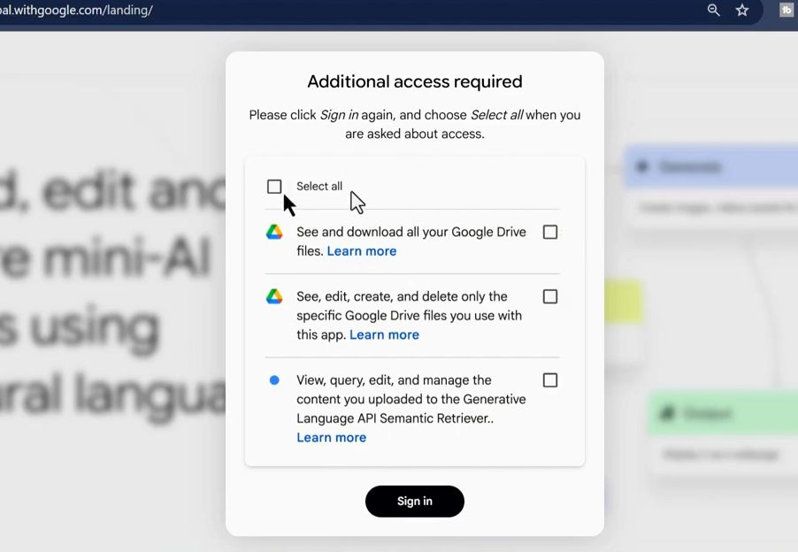 第一步,打开Google opal,网址是:opal.withgoogle.com,当然,你也可以直接用Google搜索opal, 第一个结果是。到了Opal网站,点登录按钮,用谷歌账号登录,选账号、点继续,授予它要的所有权限,之后就会进入Opal仪表盘。
