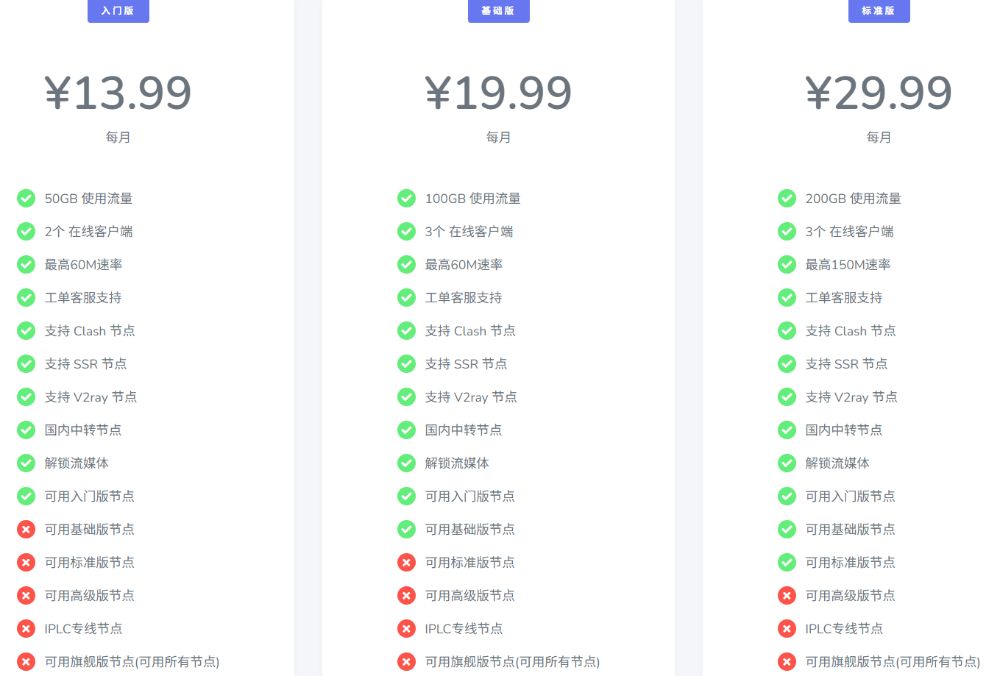 疾风云的套餐价格从入门级到旗舰级不等,月付价格13.99元起,可根据流量需求和同时在线设备数选择适合方案。部分平台还支持签到领取流量、优惠码折扣等福利。