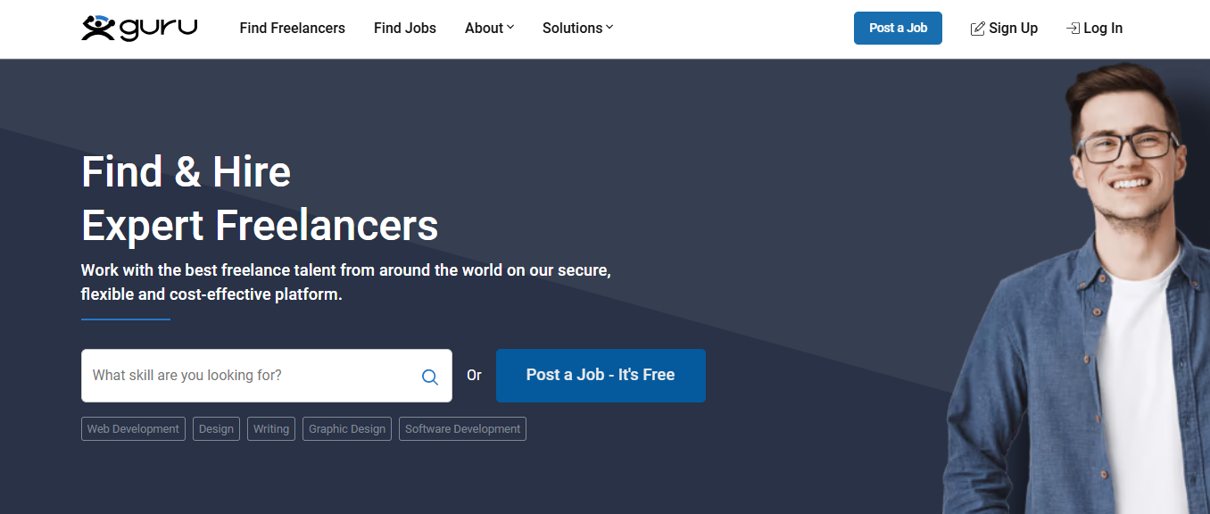 Guru 的特点是项目分类细致、界面干净,客户主要来自欧美与英国地区。优势是模块化付款方式灵活,长期合作机会多,平台规则透明,也适合喜欢稳定节奏、希望长期维护某些项目的接单者。