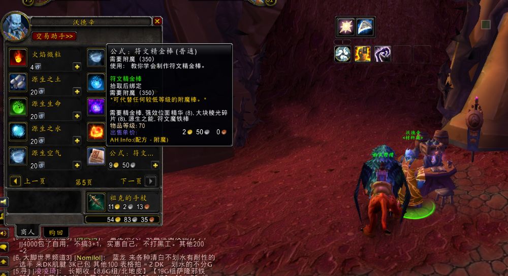 网上查了很多,有的说在沙塔斯,有的说在泰罗卡森林,其实都不对。最新的魔兽世界时光服里的符文精金棒图纸是在地狱火半岛塔哈玛特神殿的材料商NPC沃德辛处购买的。这个是LM的购买点,部落的应该差不多也在地狱火半岛吧。