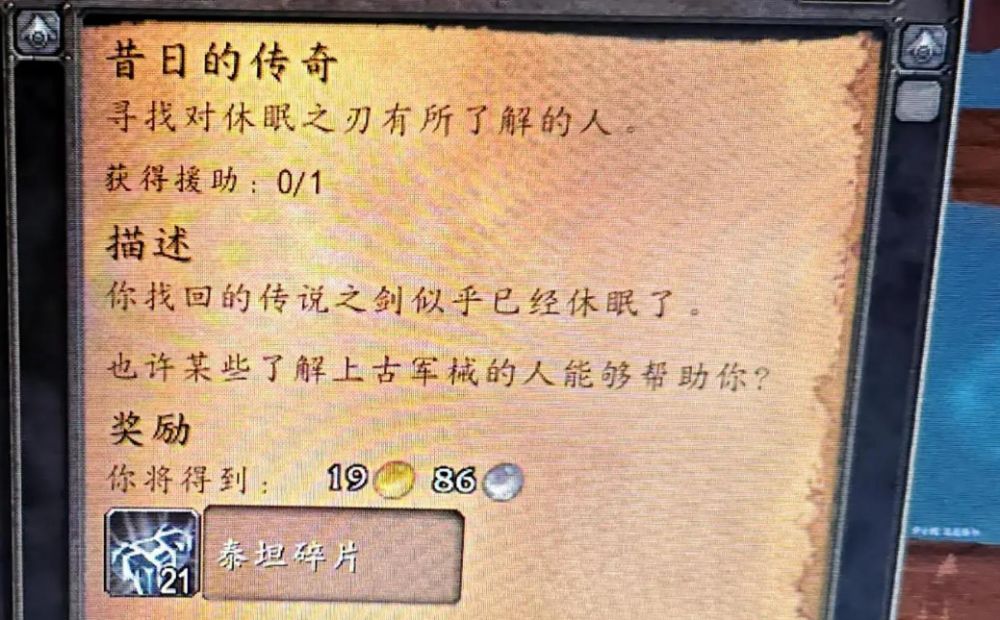 点击风吻之刃会接到《昔日的传奇》任务,仅提示“传说之剑已经休眠了,也许某些了解上古军械的人能够帮助你?”。